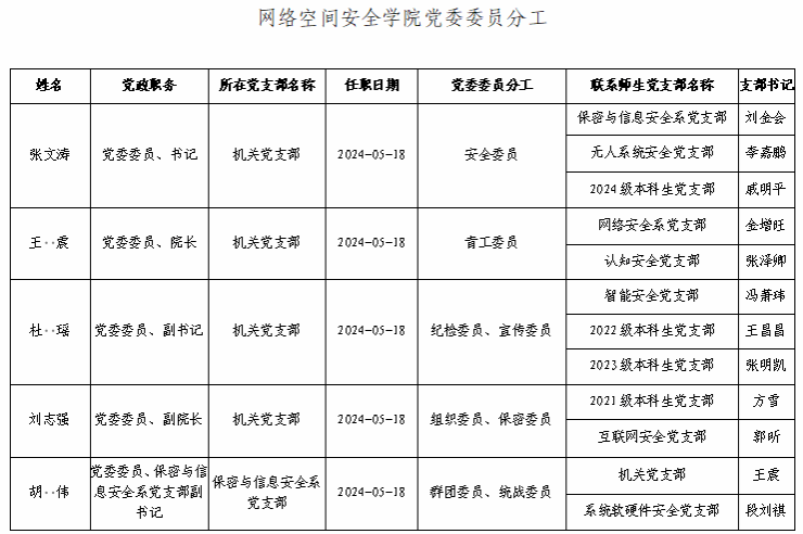 党委委员及分工如下: