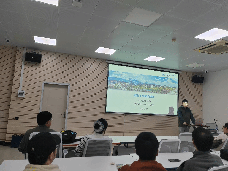辅导员王昌昌、兼职辅导员王省欣和张钦尧组织,邀请张腾、刘鹏望、刘洋伯、李凌宇四位优秀硕士毕业生,围绕私企求职、科研能力提升、央国企就业等主题展开分享,吸引了全院在校研究生生参与。活动由王省欣主持。