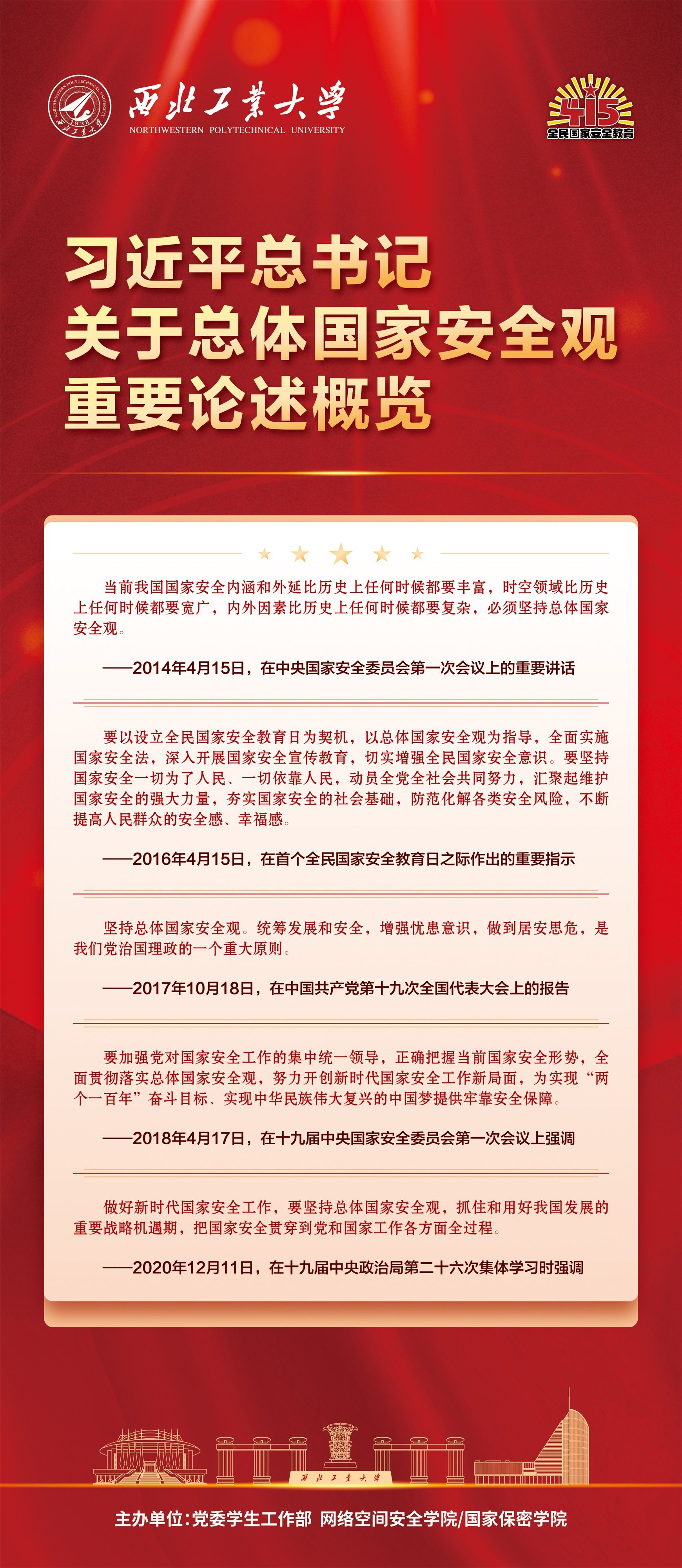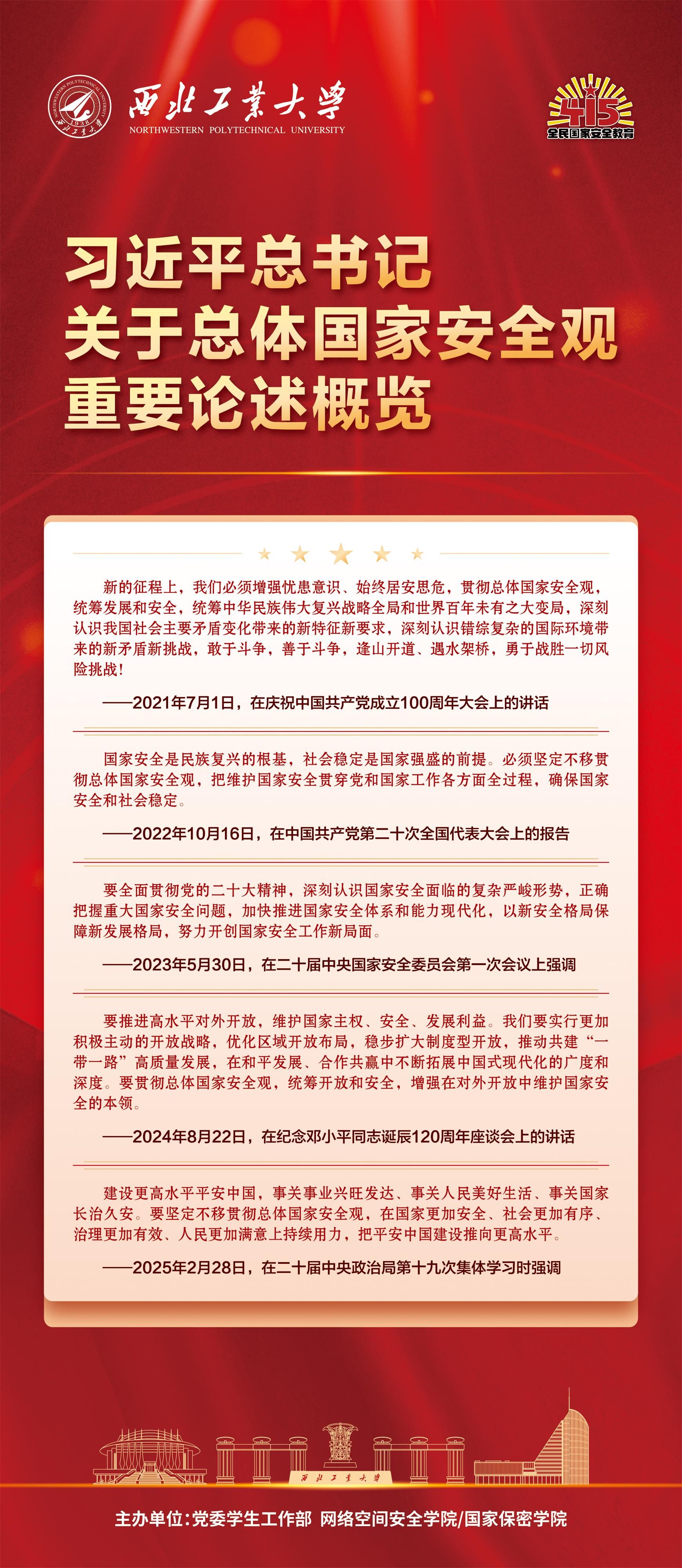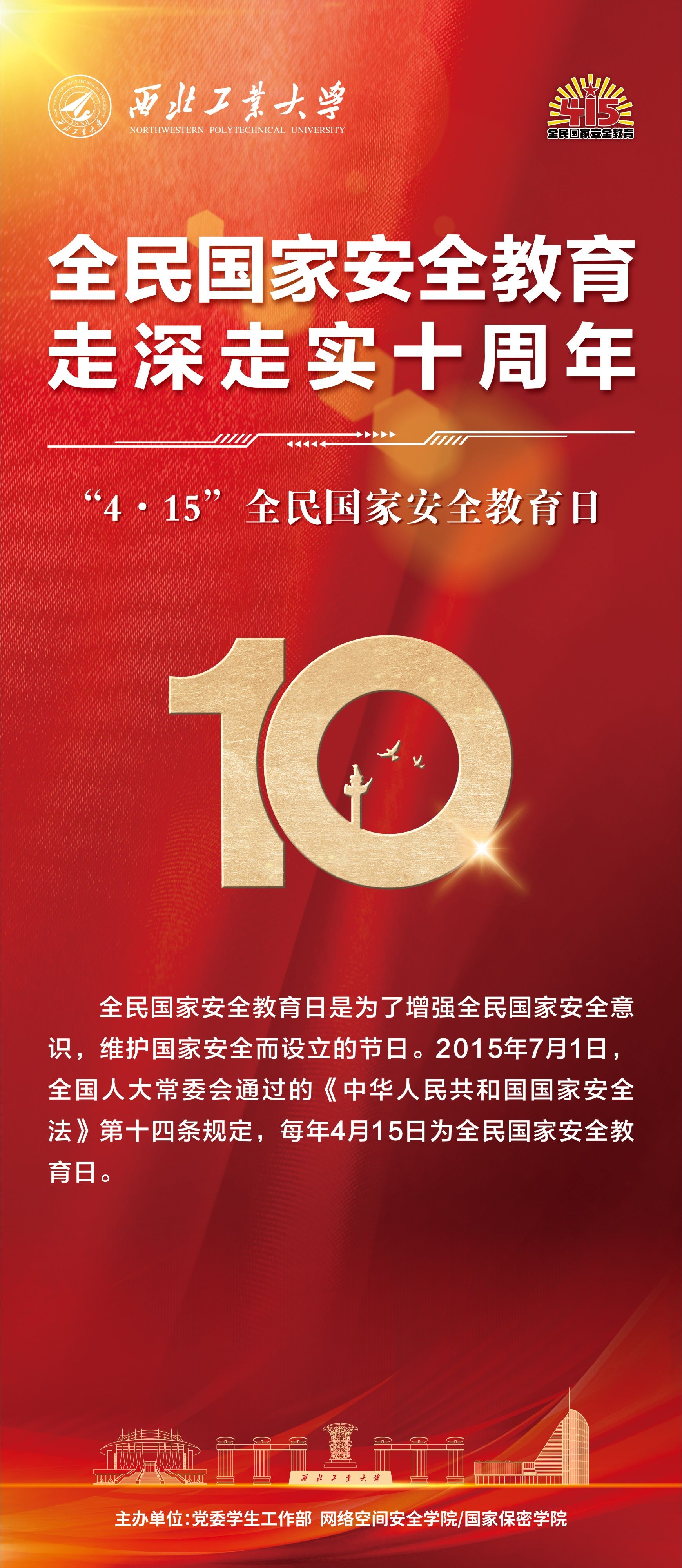 在2025年第十个全民国家安全教育日到来之际,西北工业大学党委学生工作部和色播 联合推出“西北工业大学国家安全教育主题展”,以期通过此次活动增强全体师生安全意识,筑牢国家安全防线,以实际行动践行“国家安全,人人有责”的时代使命,共同守护国家长治久安与校园和谐稳定。