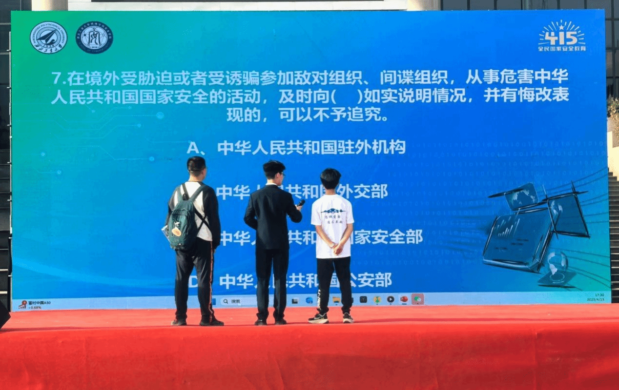 活动现场周围还布置有“全民国家安全教育 走深走实十周年”——“4·15”全民国家安全教育日主题展,内容涵盖总书记关于总体国家安全观的重要论述、国家安全基本知识及相关法律体系、案例警示、国家安全西工大在行动等。色播