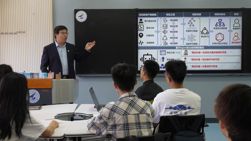 在技术创新领域,学院团队与公安、中国电信等开展了深度合作,针对目前电信反诈领域存在的误报率高、实时性差、模型更新困难等突出问题,创新性地融合传统数据挖掘与深度学习、大模型等AI技术,提出了一系列高效的诈骗行为识别方法,形成了智能、高效、可解释并可保护用户隐私的解决方案。内部测试结果显示,识别准确率上较现行方案提升超过40%。提出的高风险用户识别方法荣获全国“挑战杯”专项赛等多项赛事的全国一等奖。