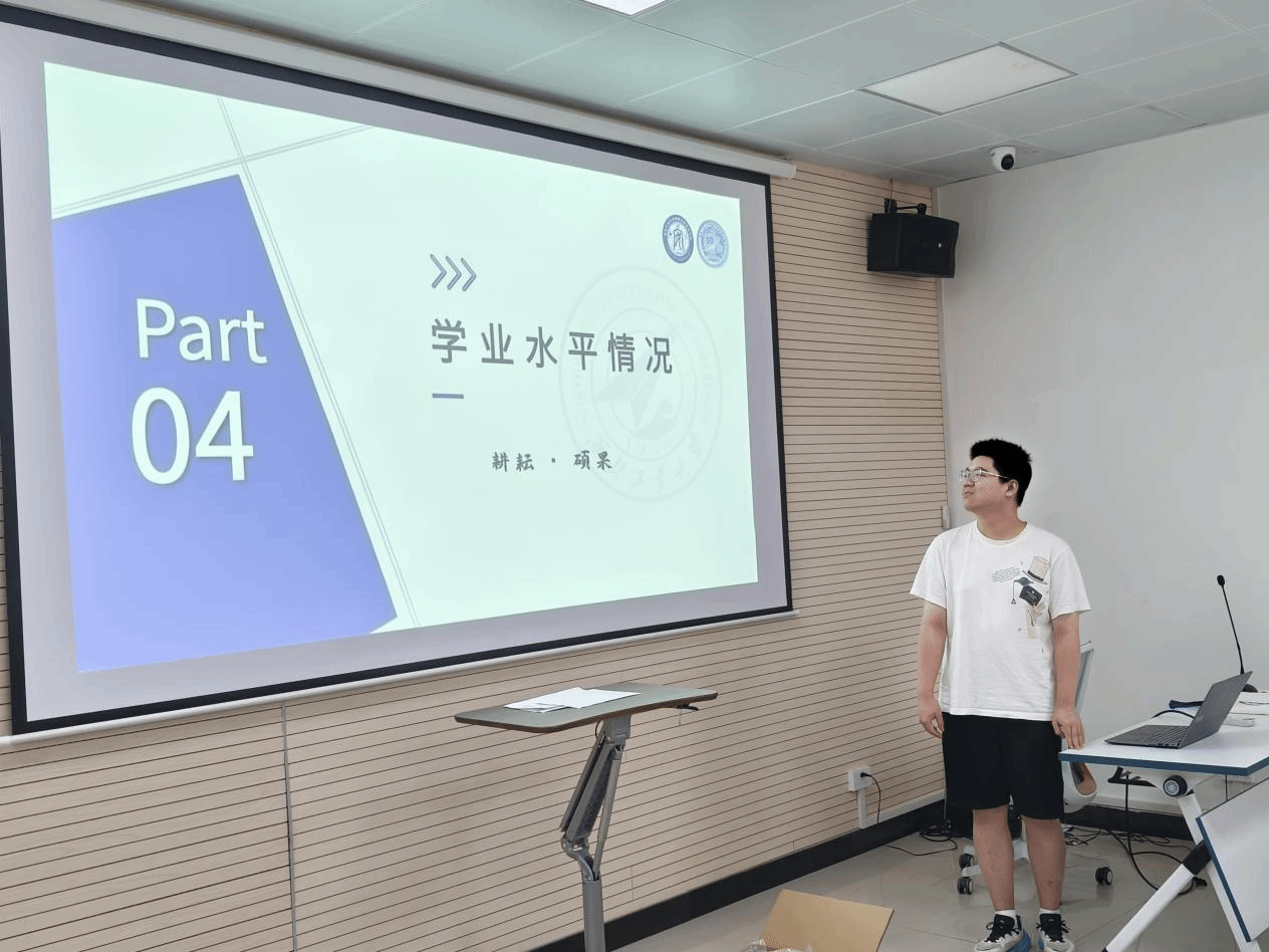 会议第四项,班级学习委员李佩逸同学作班级学业建设专题汇报。过去一学年,DL062450班始终秉持"以学为本、互促共进"的理念,构建起"集体治学、互助助学、榜样促学"三位一体的学风建设体系。通过积极开展如成立微积分一对一帮扶小组等学业帮扶活动,班级整体学业水平显著提升。当大屏幕上闪现出同学们挑灯夜读、热烈讨论的温馨画面时,现场响起阵阵掌声,这些记录着奋斗足迹的瞬间,正是50班优良学风的最好见证。