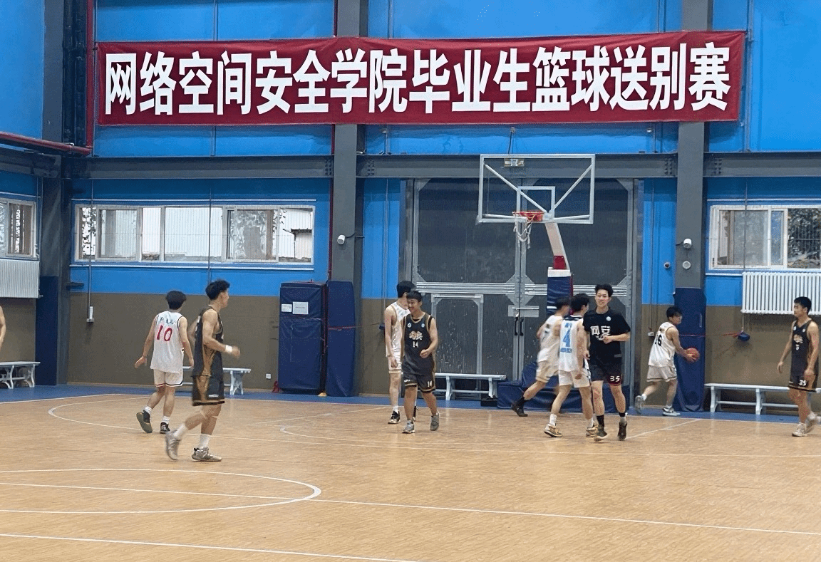 当晚6:30,原定于户外篮球场进行的比赛因突降雷阵雨转至室内场地进行。毕业生代表队与在校生代表队分队展开较量,比赛过程紧凑有序,氛围轻松友好。双方队员配合默契、奋力拼搏,充分展现了网安学子团结协作、勇于挑战的精神风貌。