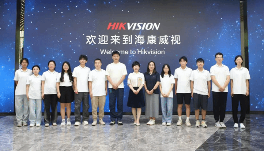 "筑梦AI新时代,护航网安新未来"暑期社会实践团队在院党委副书记杜瑶、辅导员仲于江的带领下,赴杭州海康威视数字技术股份有限公司(以下简称"海康威视")进行调研交流。此次交流活动是双方自2024年共建大学生社会实践基地以来的又一次深度合作,旨在深化产教学研协同创新,探索校企联合育人新模式。