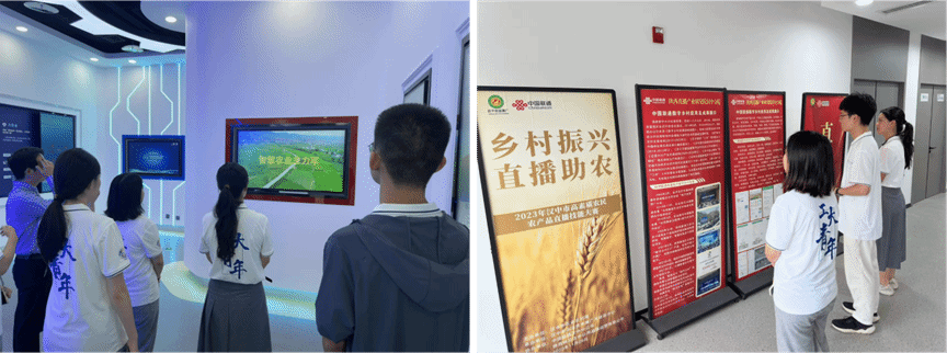 下午,实践队成员前往中国联通汉中市分公司(以下简称汉中联通)。在汉中联通的助农直播间和数字展厅内,队员们现场观摩联通数字乡村平台的落地成果,系统了解智慧农业平台的技术路径与现实成效。数字技术与乡村振兴的深度融合,充分展现了“强国必先强农、强农必先强网”的现实意义。过程中,实践队员不仅关注平台本身的功能实现,更从“数字安全赋能乡村治理”的角度进行深入思考。队员们意识到,数字乡村的稳步推进,离不开健全的网络安全防护体系,从农产品数据的隐私保护、农业物联网设备的防护机制,到平台交易链条的可信保障,每一个环节都对网络安全提出了更高要求。