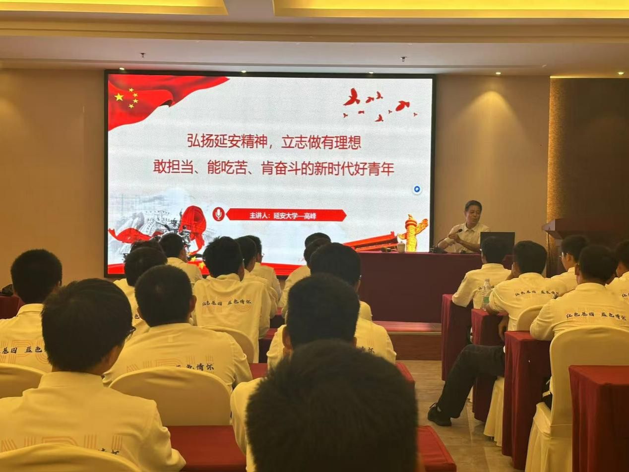 晚上,延安大学党委委员、统战部部长高峰为实践队讲授思政课。他通过一个个真实的历史故事,深入浅出地讲解了延安精神的起源、发展和丰富内涵,鼓励同学们争做有理想、敢担当、能吃苦、肯奋斗的时代新人,让延安精神在新时代绽放新的光芒。
