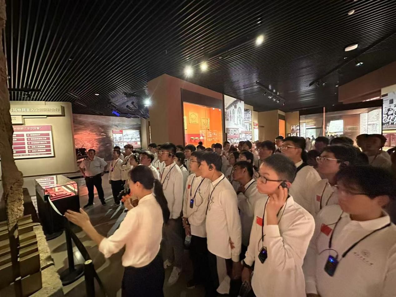 进入纪念馆,毛泽东、周恩来等老一辈革命家与中央警卫团的雕塑群像巍然屹立,他们昂首挺胸的姿态,瞬间将人们带回那个激情燃烧的革命岁月。在讲解员的引导下,队员们依次参观六个主题展厅。从土窑洞中摇曳的油灯微光,到南泥湾垦荒的金黄麦浪;从抗日军政大学的课堂,到整风运动的文献手稿,每一幅历史画面、每一件珍贵文物,都生动展现了党在延安十三年间领导中国革命从低谷走向胜利的光辉历程,让队员们深受触动。