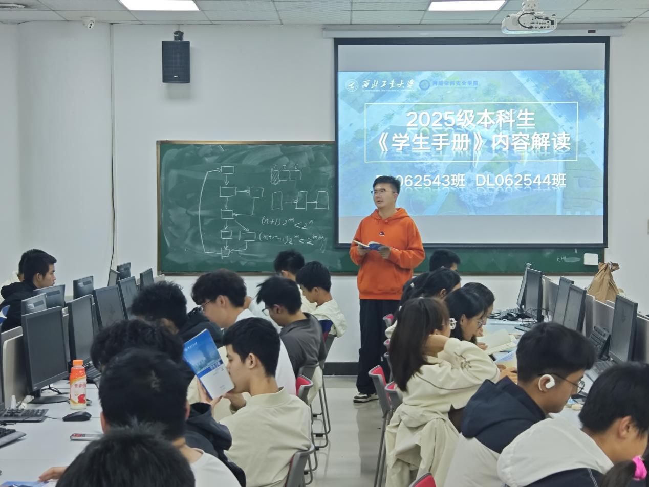 2025级本科生辅导员付强组织各班开展了《学生手册》解读暨校规校纪主题班会。