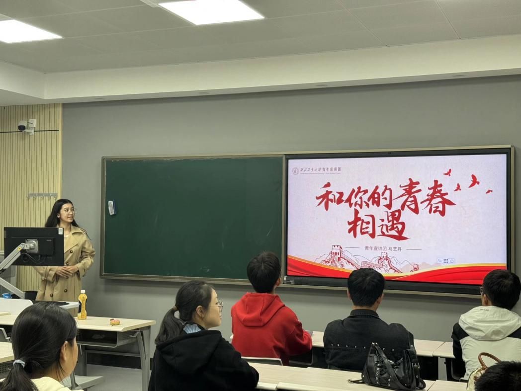 活动伊始,青年宣讲团马艺丹以“和你的青春相遇”为题声情并茂开讲,通过讲述西工大学子在科研攻关、国防建设中的青春故事,展现一代代青年将个人理想融入国家发展的担当,让同学们在鲜活案例中读懂“青春因报国而闪耀”的深刻内涵。