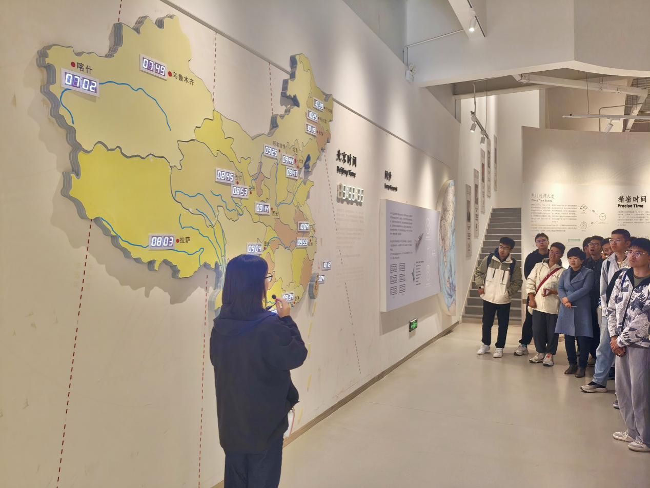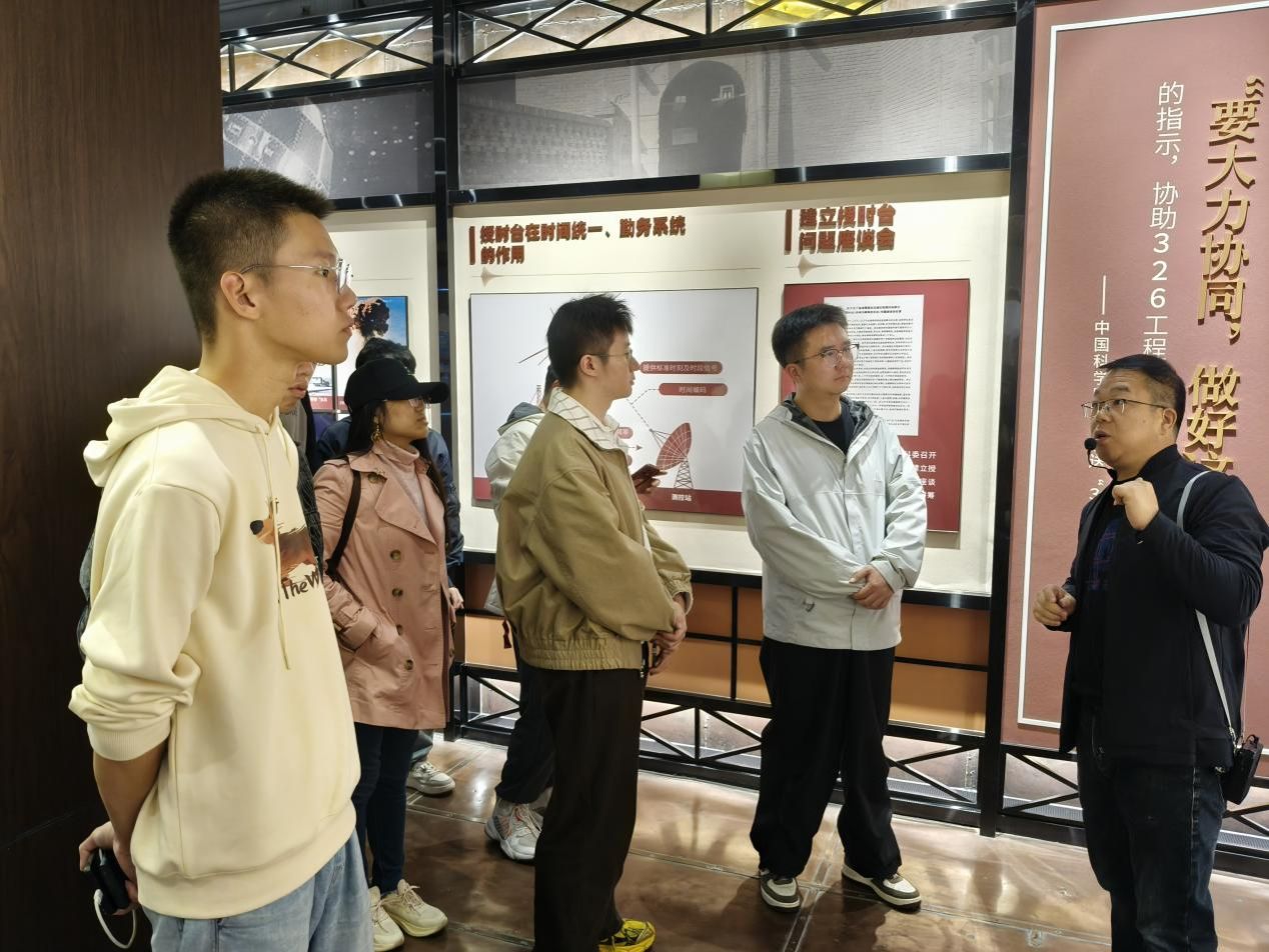 实践队先后走访了位于临潼区的中国科学院国家授时中心总部,以及位于蒲城县的中国科学院国家授时中心授时部。在专业人士的细致讲解下,实践队员深刻认识到,高精度的国家标准时间堪称现代社会稳定运行的基石。而中国科学院国家授时中心作为“北京时间”的发播运转核心单位,肩负着“为国守时”的重大使命,为国家通信、金融、电力、交通、测绘、国防等众多关键行业提供了不可或缺的高精度授时服务。