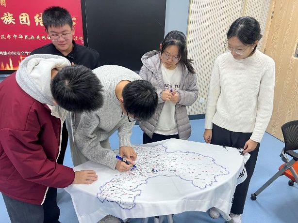 10月30日晚,学院在长安校区教东C-303教室举办“非遗手作传情·民族团结同心”主题交流活动。现场设置“中国地图·寻根签名”、民族知识竞答与非遗手作体验三大环节。同学们在画卷上留下对祖国的祝福,在竞答中增进对多元文化的理解,并在宋锦苗银制作、剪纸、中国结编织等手工实践中,感受非遗技艺的魅力与传统美学的精髓。整场活动在温馨互动中深化了情感联结,绘就了民族团结的生动图景。