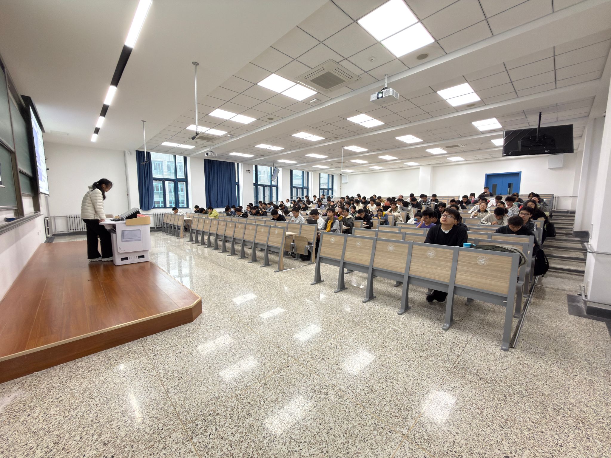 在英语四级备考专场,四级成绩名列前茅的李一凡同学担任主讲。她从考前准备、时间规划、题型讲解等多个方面,向同学们层层剖析了英语测试的种种难点,逐一分享了宝贵的学习经验。她通过分享亲身的考试经历,帮助同学们全方位认识了英语课程学习与大学英语测试,并鼓励同学们从听、说、读、写四个维度,持之以恒地加强练习,在考试中取得理想的成绩。