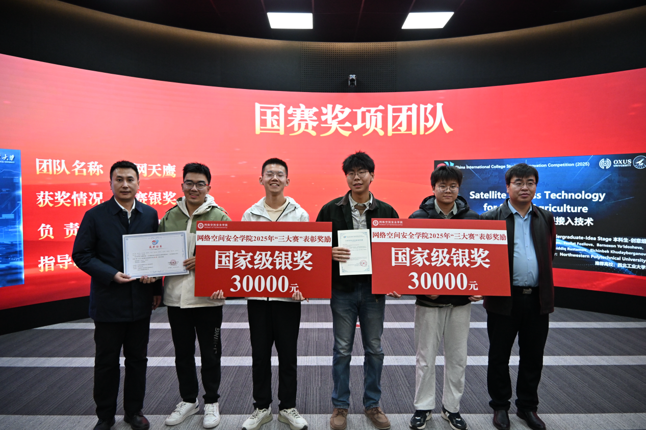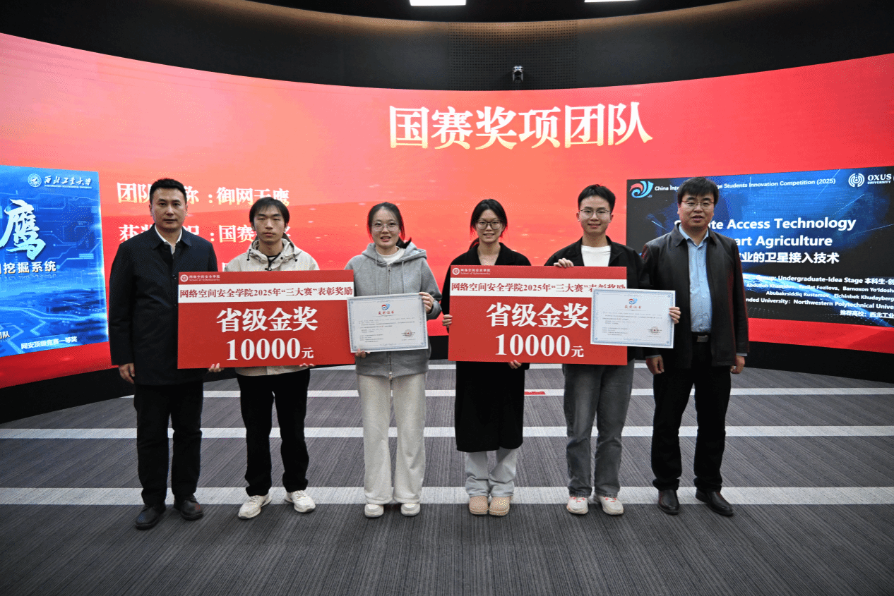 随后,王震和刘星作为颁奖嘉宾,为学院2025年“三大赛”获奖团队颁发获奖证书及奖牌,并与团队代表们亲切合影留念。