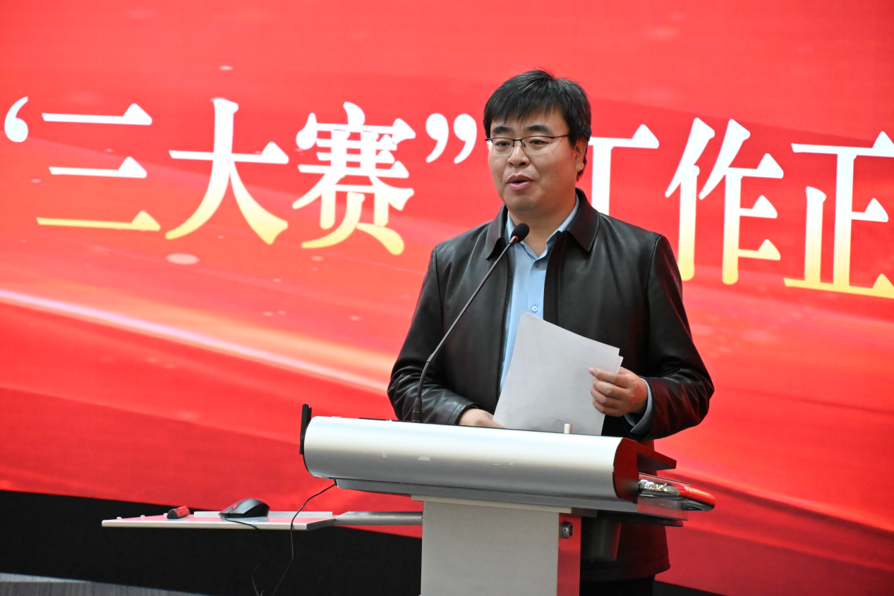 在长安校区召开2025年“三大赛”总结大会暨2026年启动动员会。学院院长王震、校团委副书记刘星、学院党委副书记杜瑶、院长助理胡伟、学工主管方雪出席会议。会议还特别邀请到校内“三大赛”金奖团队负责人与学院竞赛团队指导教师和各年级学生代表共120余人参会。会议由学院团委书记付强主持。