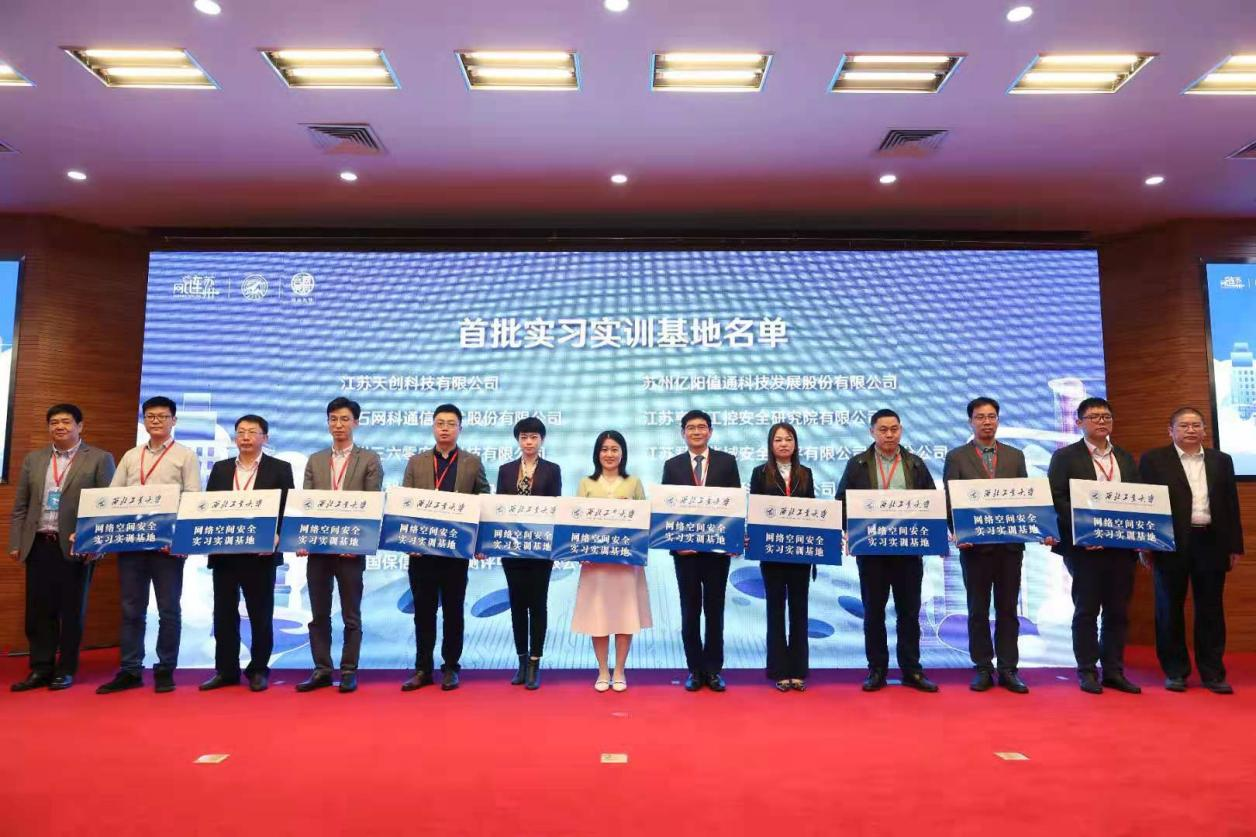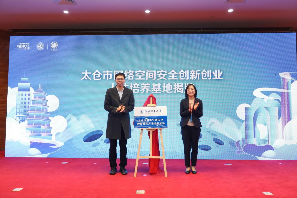 常务副院长张盛兵、苏州电信总经理石磊分别为苏州和太仓的互联网企业授予“网络空间安全实训实习基地”牌。西北工业大学党委学生工作部部长、学生处处长代富平和太仓市网信办主任刘菊为太仓市网络空间安全创新创业人才培养基地揭牌。