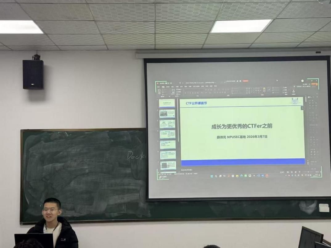 课程伊始,周子博详细介绍了本次CTF教学公开课3.0的核心内容与学习安排。课程以零基础入门为起点,在原有基础上优化升级了课程体系,覆盖Web安全、逆向工程、二进制安全等CTF主要领域,让同学们系统的了解CTF学习框架。他全面介绍了CTF竞赛的基本规则,包括赛事体系,答题流程,组队机制等内容。此外,他还讲解了西北工业大学网络空间安全大学生创新实践基地的最新选拔标准,通过“校赛考核+线下面试”等形式,欢迎热爱网络安全、有探索精神、具备团队意识的新成员加入。