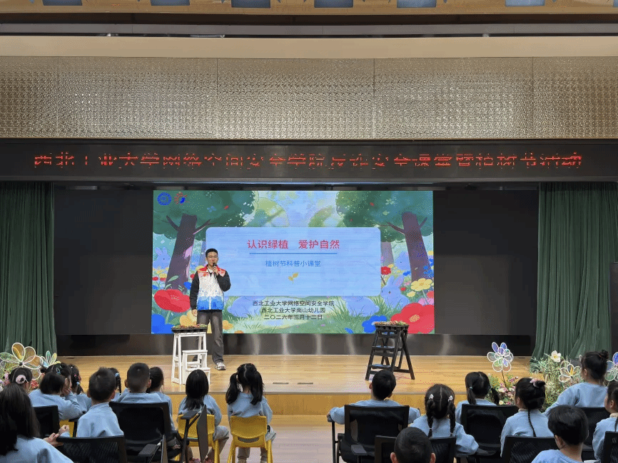 在全国第 63 个学雷锋纪念日与第 48 个植树节交汇之际,3 月 12 日,学院组织 “网小安” 志愿者走进西工大南山幼儿园,开展 “学雷锋践初心・植新绿护成长” 主题实践活动。活动通过反诈安全课堂情景模拟和绿植科普讲解,让小朋友在互动中学习安全知识、树立生态环保理念。在户外植树环节,小朋友与志愿者、教师分工协作,共同栽种树苗,践行护绿约定。本次活动将学雷锋志愿服务、植树节实践与 “网小安” 反诈宣传有机结合,以实际行动传承雷锋精神、传播生态文明理念、守护儿童健康成长。南山幼儿园园长沈俊、色播