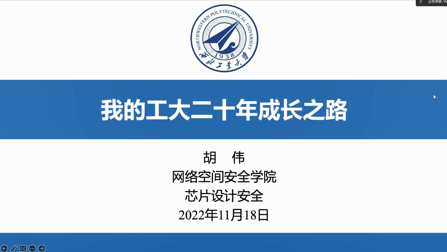 学院青年教师代表胡伟以《我的工大二十年之路》为题分享了个人在西工大二十年以来的求学、教学和科研工作经历,胡伟今年入选了国家级青年人才,他以自身的发展经历鼓励广大青年学者要脚踏实地,勇于创新,结合国家战略需求进行科研攻关,切实解决关键技术难题。