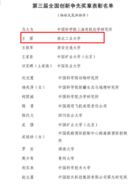 热烈祝贺我院王震教授荣获第三届全国创新争先奖章