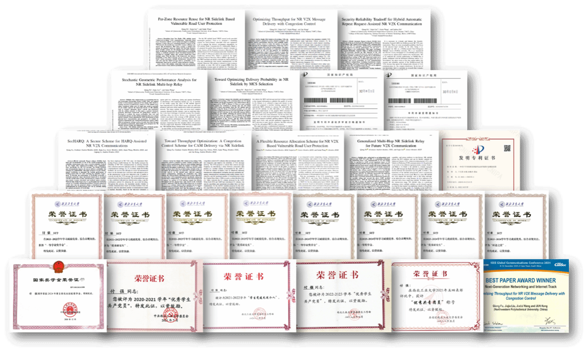 付强围绕5G/6G网络安全、车联网安全等关键领域开展科学研究,勤奋钻研、勇于创新。博士期间以第一作者发表CCF-A类、SCI一区TOP等高水平学术论文10篇、申请/获授权发明专利3项。获国家奖学金、研途之星、学业一等奖学金,并连续三年获评“西北工业大学优秀研究生”荣誉。