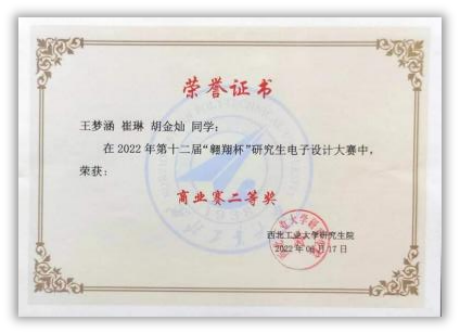 2022年 第十二届“翱翔杯”研究生电子设计大赛二等奖