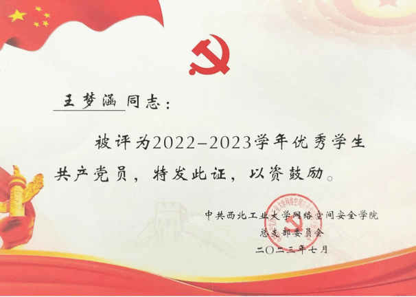 网络空间安全专业 2021级硕士研究生 学生第七党支部组织委员 |
