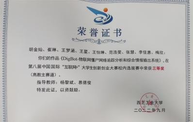 2022年 第八届中国国际“互联网+”大学生创新创业大赛校内选拔赛三等奖