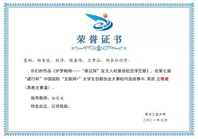 2021年 第七届中国国际“互联网+”大学生创新创业大赛校内选拔赛三等奖