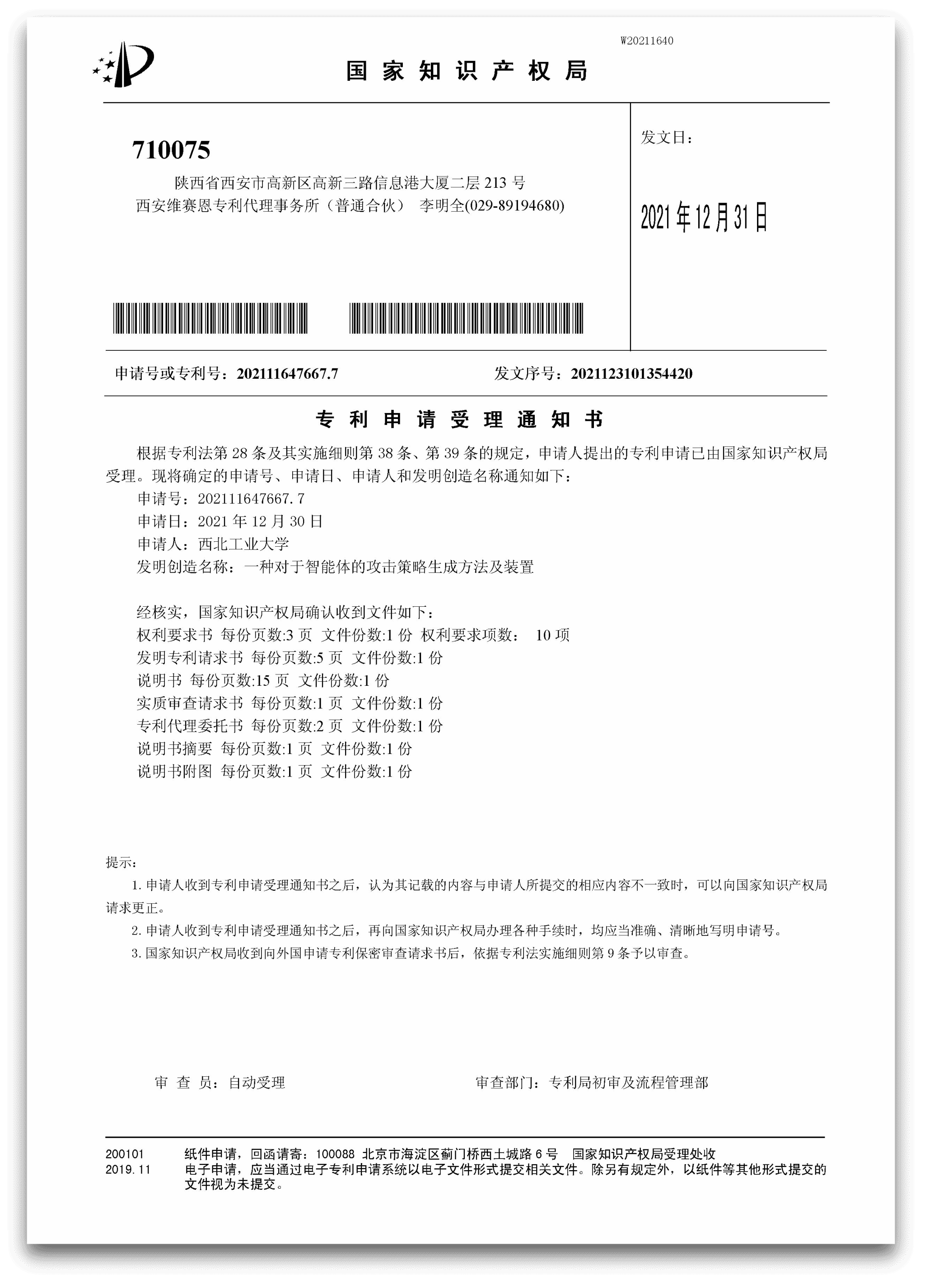 学生第四党支部副书记兼组织委员。研究方向为深度强化学习算法的脆弱性与鲁棒性,硕士期间以第一作者发表高水平论文2篇,申请发明专利1项,作为项目负责人主持校内基金项目2项,获国家奖学金等各类奖学金7次,获优秀研究生等荣誉称号5次,参加“互联网+”等各类竞赛获奖5次。 |