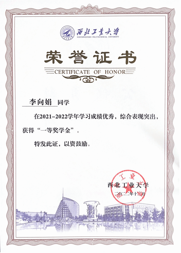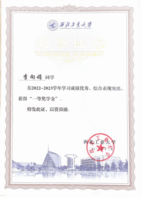 在学习上,李向娟勤奋刻苦、开拓创新,努力夯实理论基础,踔厉奋发科研高峰。大四推免至本校继续攻读硕士学位,研一学年必修课学分积91.93(排名1/92),目前已发表高水平论文2篇,申请发明专利1项,主持校内基金项目2项并顺利结题。她积极参加国内外学术会议、与国外课题组交流研讨,以不断拓展视野、力求创新。