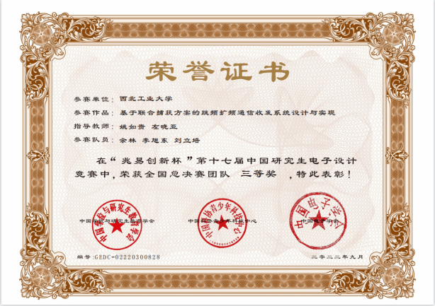2022年第十七届中国研究生电子设计竞赛全国三等奖