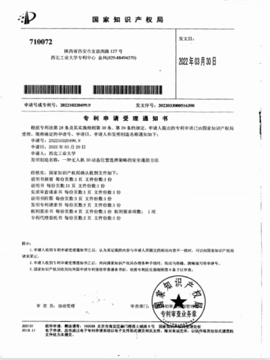 发明专利:一种无人机3D动态位置选择策略的安全通信方法.(公开)