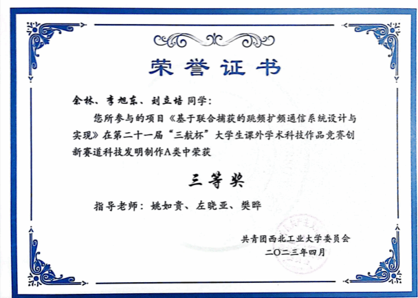 2023年二十一届“三航杯”大学生课外学术科技作品竞赛三等奖