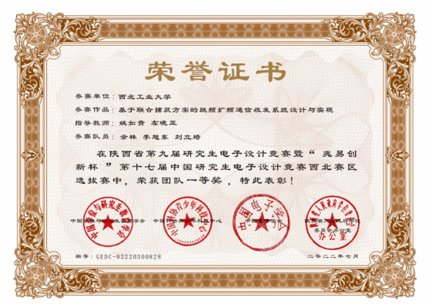 2022年第十七届中国研究生电子设计竞赛西北赛区一等奖