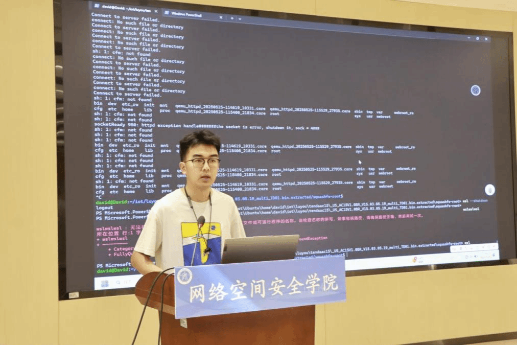 最后,由西北工业大学学生信息安全协会会长周子博为同学们进行了生动刺激的路由器攻防演示,形象地展示了网络漏洞的隐秘性、危险性以及网络安全的重要作用。