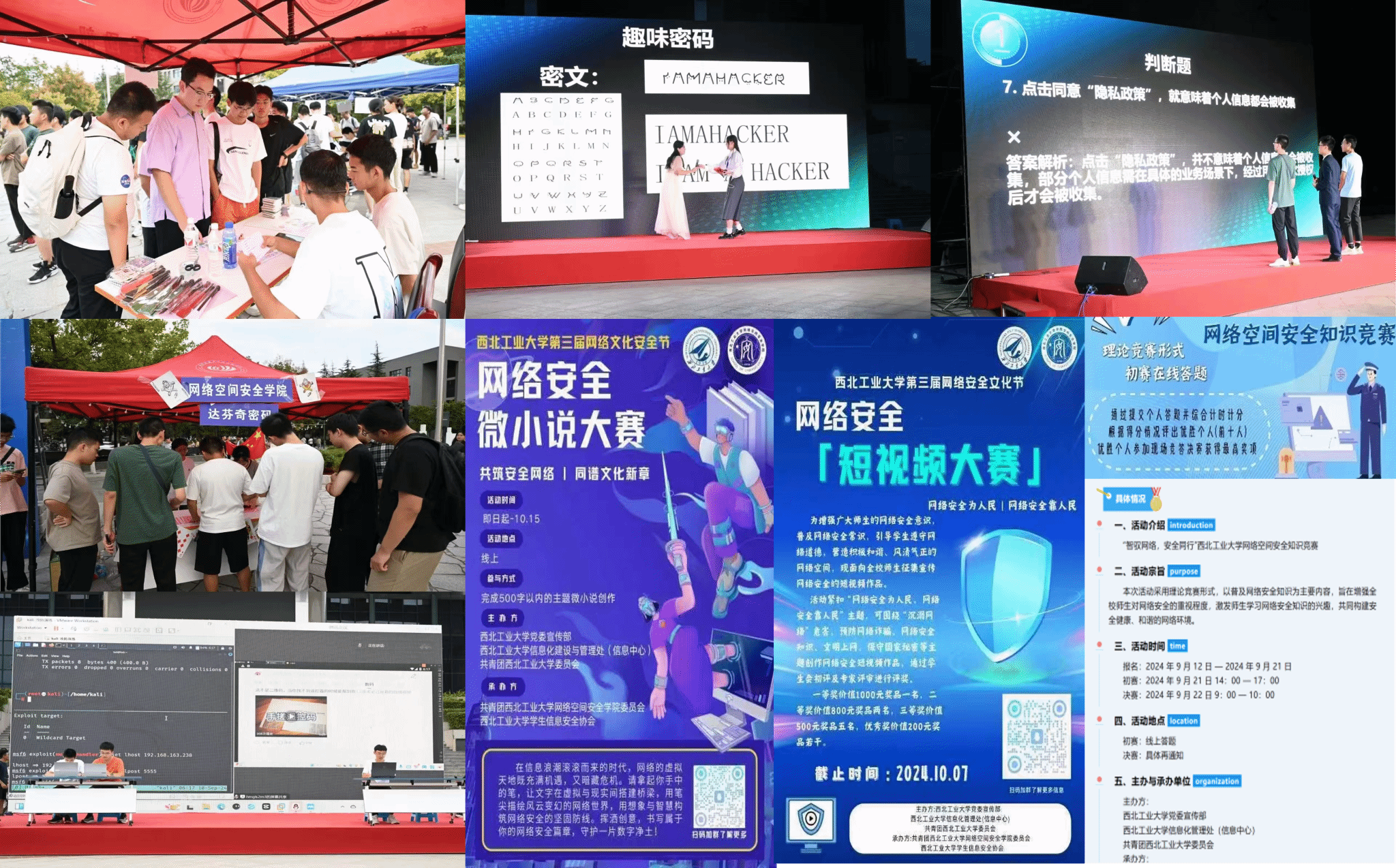 西北工业大学网络安全文化节于每年九月开幕,旨在深入贯彻落实习近平总书记关于网络安全的重要指示精神,积极响应国家网络安全宣传周战略部署,提升广大师生的网络安全意识与防范能力。通过形式多样、内容丰富的活动,如安全短剧、才艺展示、知识竞答、互动游戏等,文化节不仅增强了校园网络安全文化氛围,还推动了网络安全教育的实践性和互动性,助力构建产学研深度融合的网络安全生态体系,引导学生肩负起为国铸剑的使命,服务国家网络强国战略。