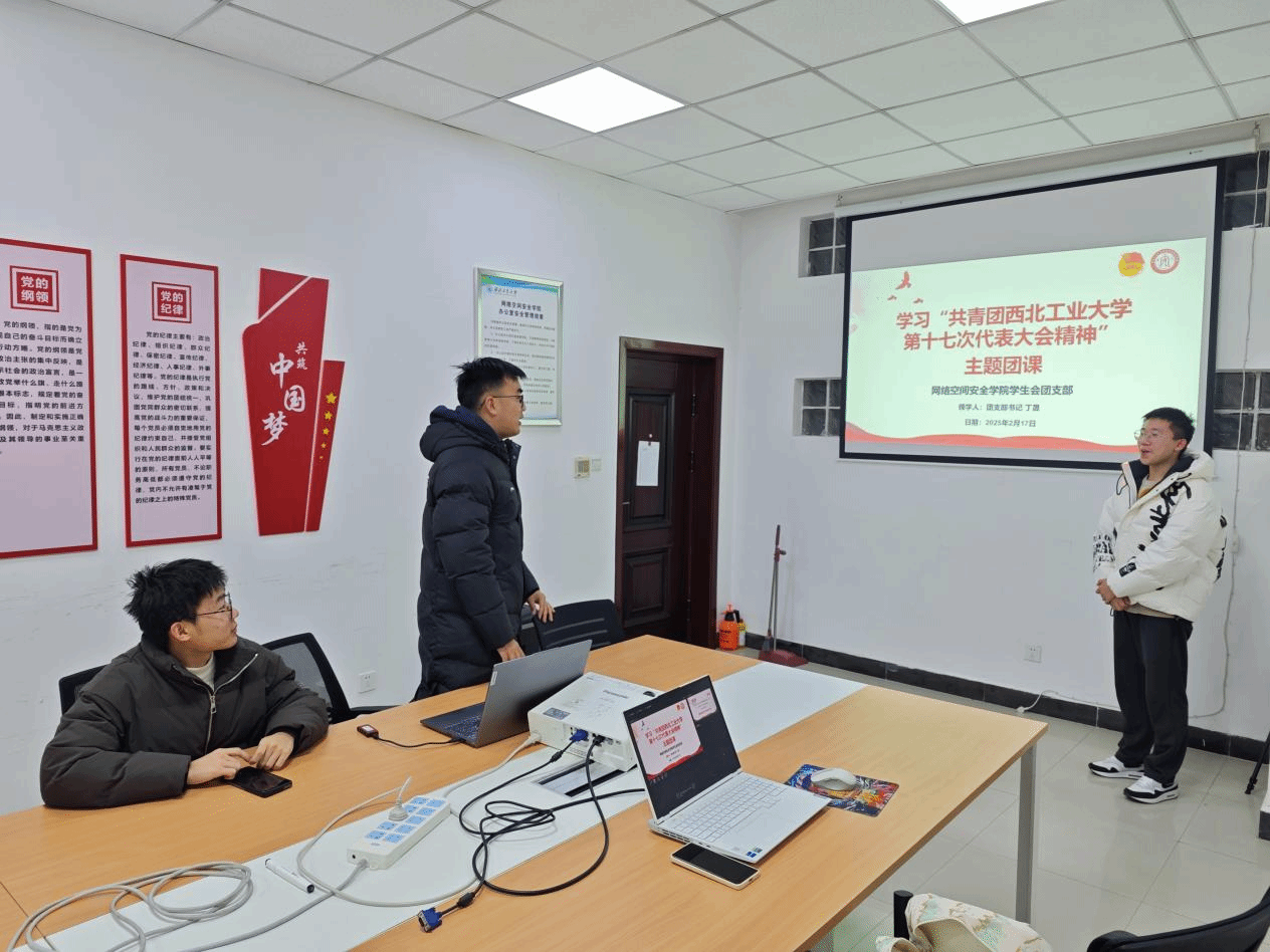 团课伊始,丁晟带领学生会团支部成员深入学习了共青团西北工业大学第十七次代表大会精神。通过解读大会报告,大家认识到新时代共青团的使命与责任,明确了自身定位,意识到要牢记共青团员使命,听党话、跟党走,践行“党有号召,团有行动”的初心,将个人理想与国家命运紧密相连,为实现中华民族伟大复兴的中国梦贡献力量。