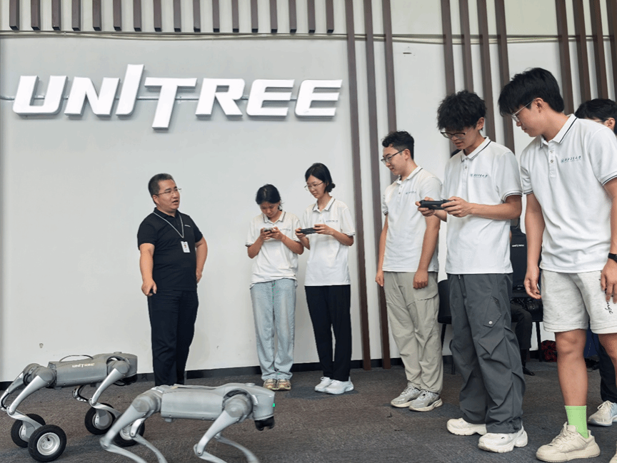 互动环节中,队员们亲自操控宇树科技的机器狗,领略前沿成果魅力,对其行云流水般的高难度动作赞叹不已。操作间隙,队员们还就技术细节与技术专家展开深入交流——从运动控制算法到信号传输实现,并针对网络安全专业需求,探讨了机器人技术在防护领域的应用前景。专家们的详尽解答,不仅加深了大家对机器人底层逻辑的理解,更让人深切感受到科技赋能未来的澎湃动力。