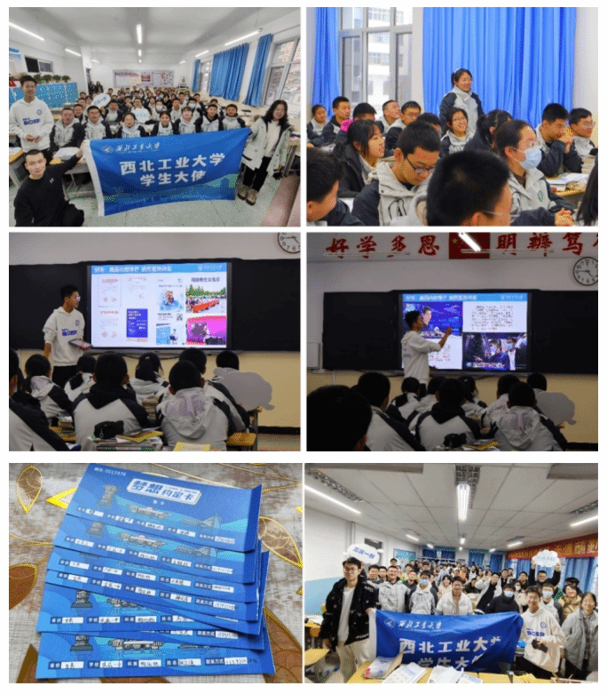 2023级本科生薛沛元、刘旭焱、蔡煜、阿依迪达尔、贺子怡等同学,纷纷回到自己的母校,宣讲着工大的招生政策,鼓励学弟学妹来到这所“好听、好看、好学、好胜、好前程”的“五好”一流大学,他们耐心解答大家提出的问题,为学弟学妹们解决了备考、填报志愿、专业解答等各种困惑,在学弟学妹们心中种下了报考西北工业大学的梦想种子。周玲宇同学说到:“回高中母校进行宣讲活动,是一次非常难忘的经历。我们成员前期非常用心地准备了这次宣讲,向学弟学妹们宣传我们隐姓埋名为国铸剑的精神,与学弟学妹们交流学习心得,我们以大学生的身份再次站在高中校园,感慨颇多,对高中的感恩之情和对大学的自豪之情都溢于言表。这次活动不仅向更多同学们介绍了西工大,也让我们找回了那个充满青春活力的自己,在未来的征程上继续努力奋斗。”