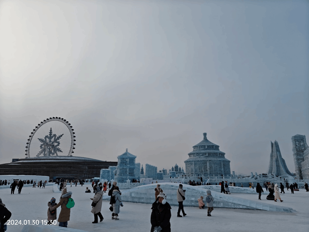 2021级本科生刘灏彬来到爆火的北方雪国哈尔滨,亲身体验的东北的热情,身高超过一米九的他大概会被“南方小土豆”当做地道东北人吧。