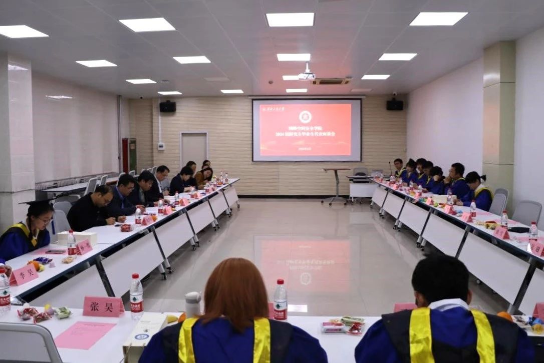 2024届研究生毕业生代表座谈会在长安校区召开。学院党总支书记张文涛、院长王震、副院长刘志强、党总支副书记杜瑶、院长助理张慧翔等院领导,学院办公室主任王海洪、各科室秘书及各年级辅导员与20名毕业生代表面对面亲切交流。