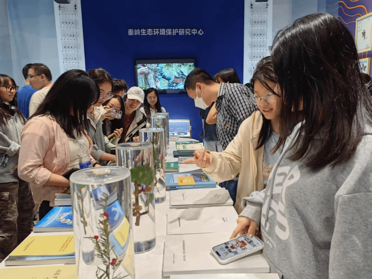 在秦岭动植物标本展区,师生观察本地特有物种的形态特征,翻阅秦岭生态环境保护相关文献资料,进一步树牢“敬畏自然、守护绿水青山”的使命意识。