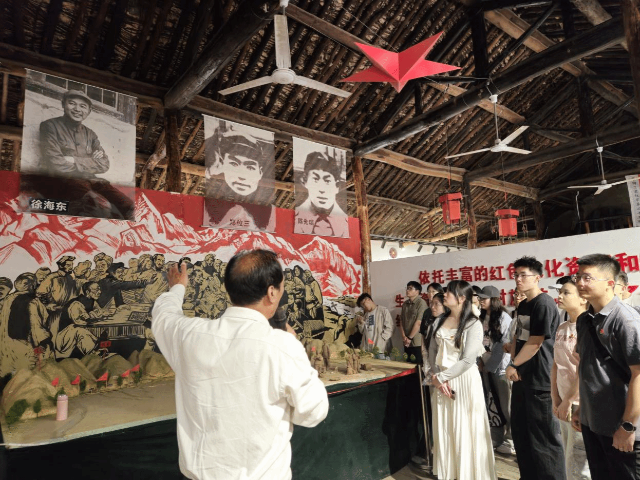 第二站,师生来到了红军过境户县陈列馆。陈列馆展出的是红二十五军、红四方面军、红七十四师在长征路上过户县地界(现鄠邑区)时的历史事件。陈列馆通过丰富、详实的史料、实物和历史照片,生动再现了红军长征经过户县的历史场景。跟随讲解员的介绍,师生们了解了数位革命先烈的英勇事迹,深刻感受到长征途中先烈们对革命理想和革命事业的无比忠诚,以及坚定信念、不怕牺牲的乐观主义精神。同时,陈列馆还展示了户县乡亲们与过境红军之间的深厚情谊,体现了军民鱼水情。