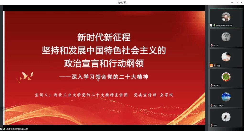 为深入学习贯彻党的二十大精神,深刻领会、准确把握党的二十大精神内涵,推动党的二十大精神落地生根,2022年12月1日,色播 邀请学校宣传部副部长全家悦副教授为学院师生宣讲党的二十大精神。此次宣讲由学院党总支副书记禹亮主持,学院师生近两百人参加党课,根据疫情防控要求,宣讲采取线上形式召开。