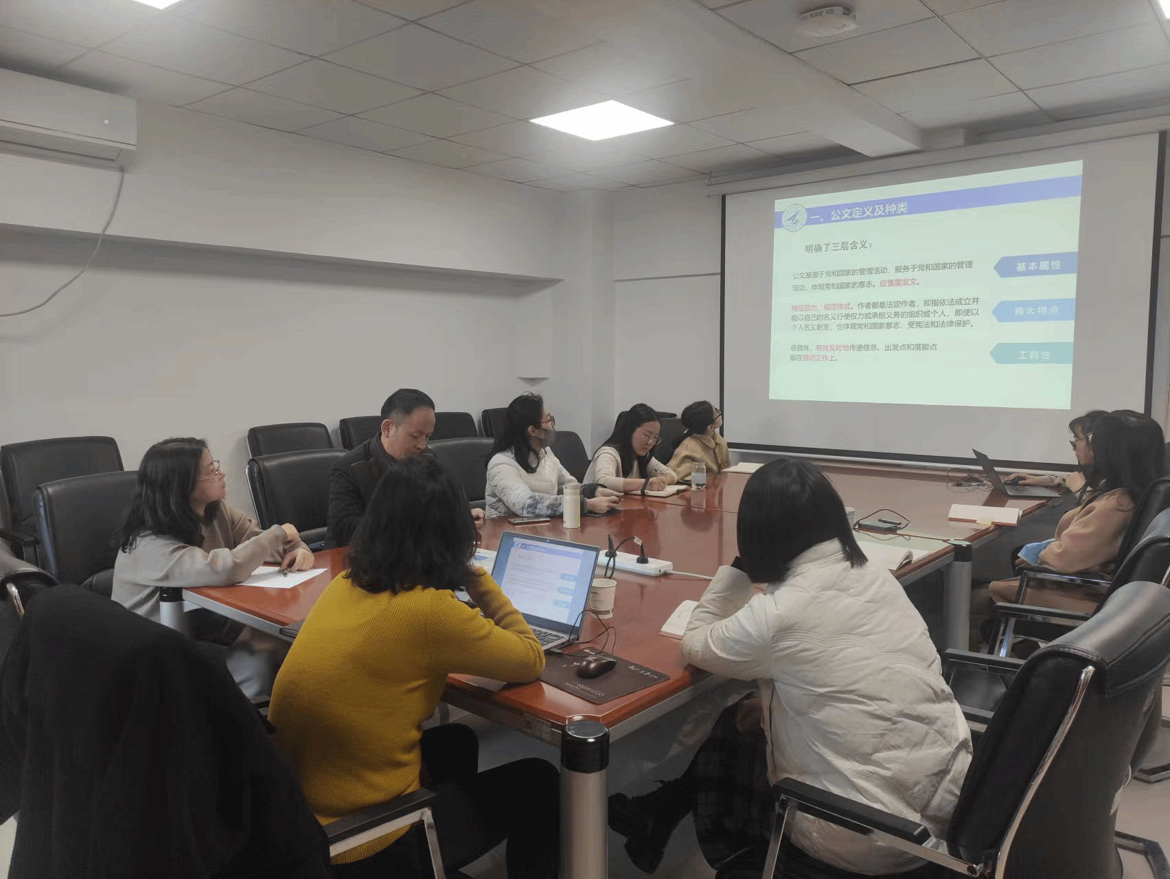 为深入学习贯彻党的二十大精神,切实提高院办人员的综合素质能力,进一步增强院办人员的公文写作水平,11月14日下午3点,色播 机关党支部在爱生楼401会议室举办了公文写作专题培训。学院邀请了校文秘政研科尹红菊老师进行授课,学院机关党支部成员、专职辅导员参加了本次培训。