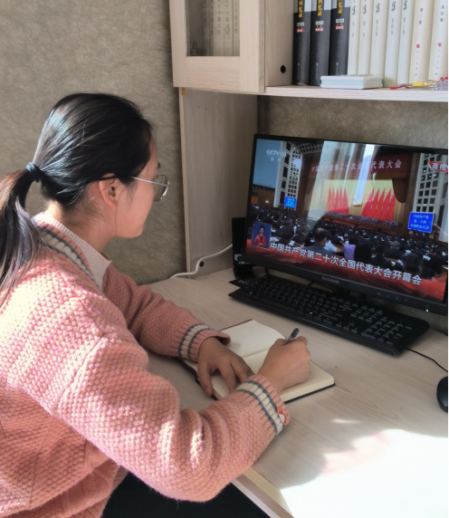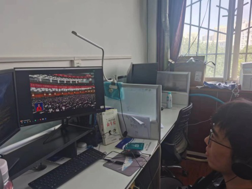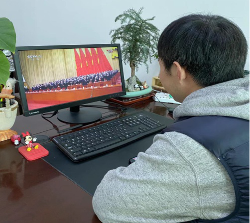 学院领导班子、党总支理论学习中心组成员及教工党支部书记集中观看开幕会直播