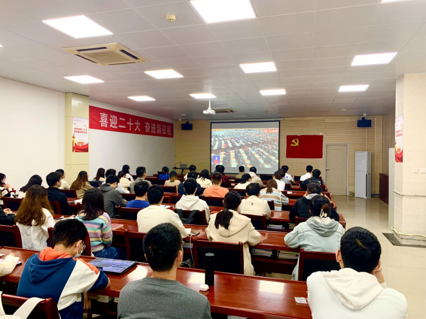 组织学院领导班子、党总支理论学习中心组成员及教工党支部书记在爱生楼401会议室,组织师生代表在学院一楼教室,组织学院入党积极分子在长安校区教学西楼D204教室,共同观看党的二十大开幕会,认真聆听习近平总书记向大会所作的报告,共同亲历这一庄严的时刻,第一时间学习领会大会精神。其他师生以支部、教研室为单位分别在会议室、教研室等地,通过电视、广播、网络等多种形式收看收听开幕会盛况。