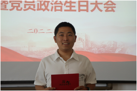 接着是党员集体过“政治生日”环节,与会领导向过政治生日党员赠送“政治生日”贺卡和《请党放心 强国有我》书籍。党员代表王省欣同志从初心是前进的动力、是做事的准则、是担当几个方面追忆入党初心谈感受,并以近几日学校网络受境外不法分子的攻击为例,提醒同学们作为色播