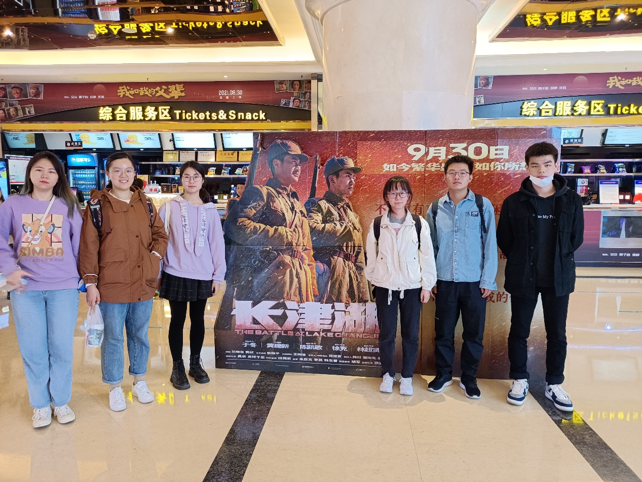学生第六党支部组织党员赴友谊校区大唐西市影城观看红色电影《长津湖》。