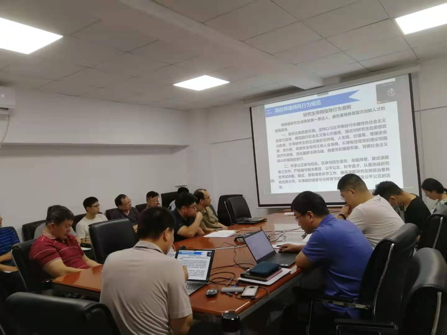 王高祖书记首先带领全院教职工学习了习近平总书记在全国高校思想政治工作会议上的重要讲话、习近平总书记关于师德师风重要论述。然后介绍了高校师德师风行为规范,针对《新时代高校教师职业行为十项准则》《研究生导师指导行为准则》中的重点内容进行了解读,并从政治纪律、职业道德、学术道德、廉洁从教四个方面,结合教学中的具体现象阐述了西北工业大学师德失范行为的35条负面清单。最后,王高祖书记面向全院教职工开展了党风廉政党课和案例警示教育。